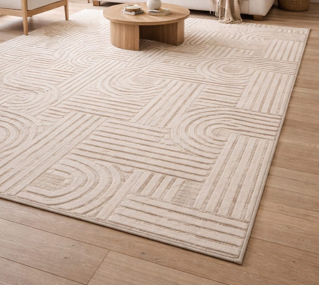 Moderne teppe med abstrakt design i varme farger som gir rommet et stilig uttrykk. Vaskbart teppe med antiskli-bakside som ligger stabilt på gulvet og er enkelt å vedlikeholde.