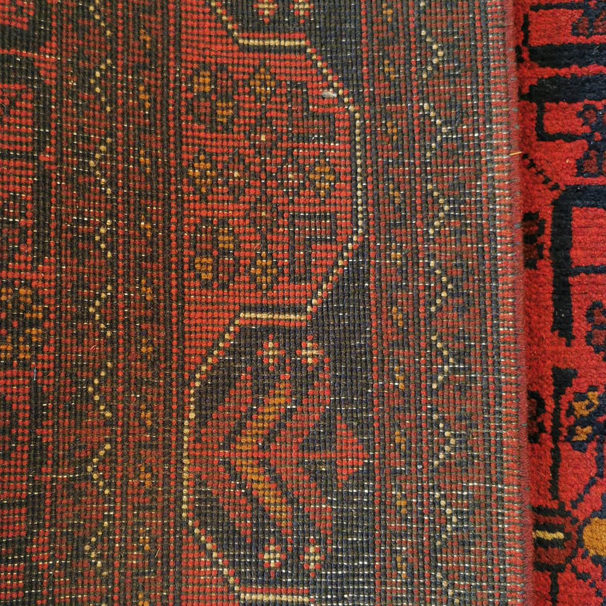 Afghan-Khal tepper har en karakteristisk rød fargepalett og detaljerte geometriske mønstre. De er ofte tett knyttet, noe som gir en jevn og slitesterk overflate. Designet er inspirert av tradisjonelle afghanske motiver, noe som gjør teppene tidløse og allsidige i både klassiske og moderne rom.