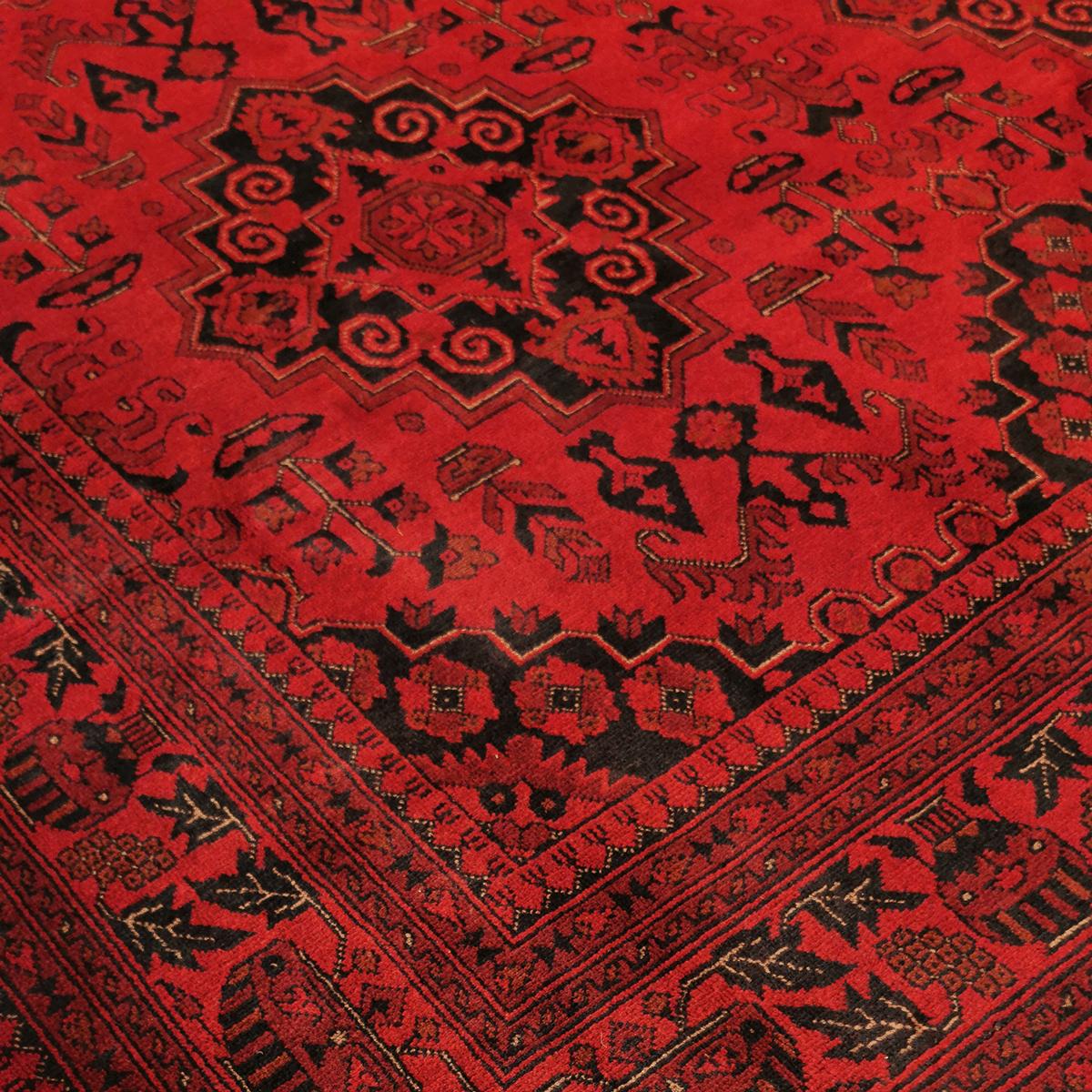 Afghan-Khal tepper har en karakteristisk rød fargepalett og detaljerte geometriske mønstre. De er ofte tett knyttet, noe som gir en jevn og slitesterk overflate. Designet er inspirert av tradisjonelle afghanske motiver, noe som gjør teppene tidløse og allsidige i både klassiske og moderne rom.