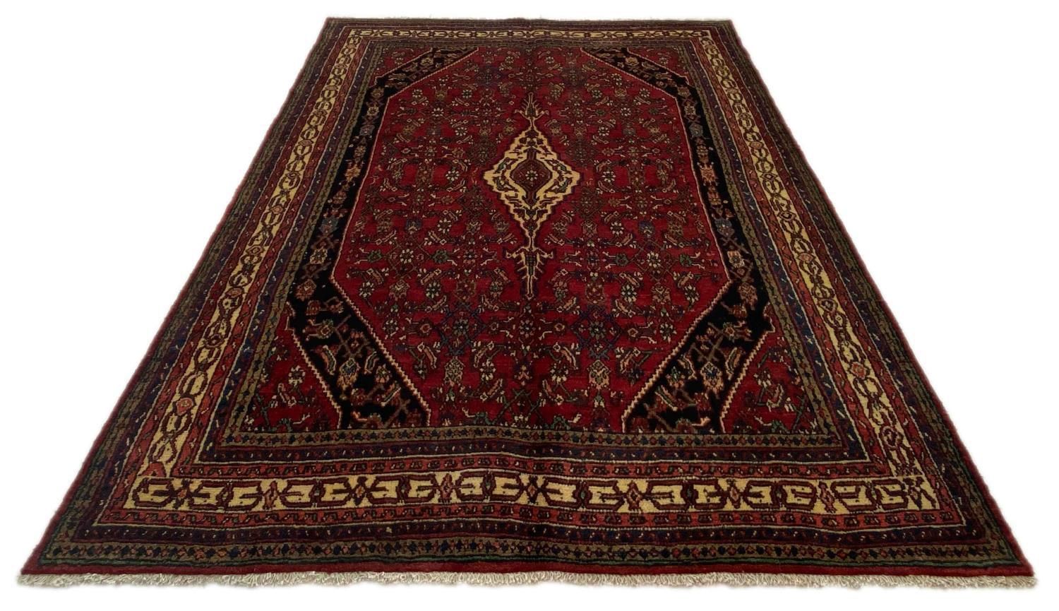 Teppene fra Hamadan produseres i over 700 landsbyer rundt byen, hver med sitt unike design i forskjellige farger, størrelser og mønstre. Tepper fra denne regionen har ofte geometriske mønstre med sterke røde og blå farger, samt typisk medaljong- eller åpne felt med motiver.