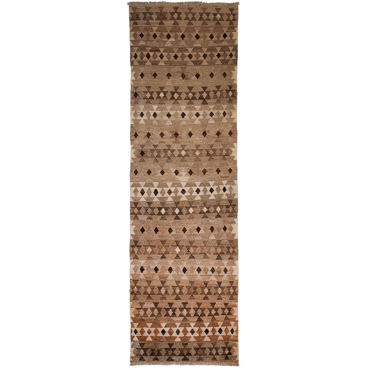 Afghanske kelimer er håndvevde tepper med sterke, geometriske mønstre og rike farger. De lages tradisjonelt i Afghanistan, ofte av ull, og har en karakteristisk flatt vevd struktur uten lugg. Mønstrene kan variere fra enkle design til mer intrikate motiver, og kelimene er kjent for sin rustikke, autentiske stil som passer godt inn i både tradisjonelle og moderne interiør. Disse kelimene er vendbare og kan brukes på begge sider.