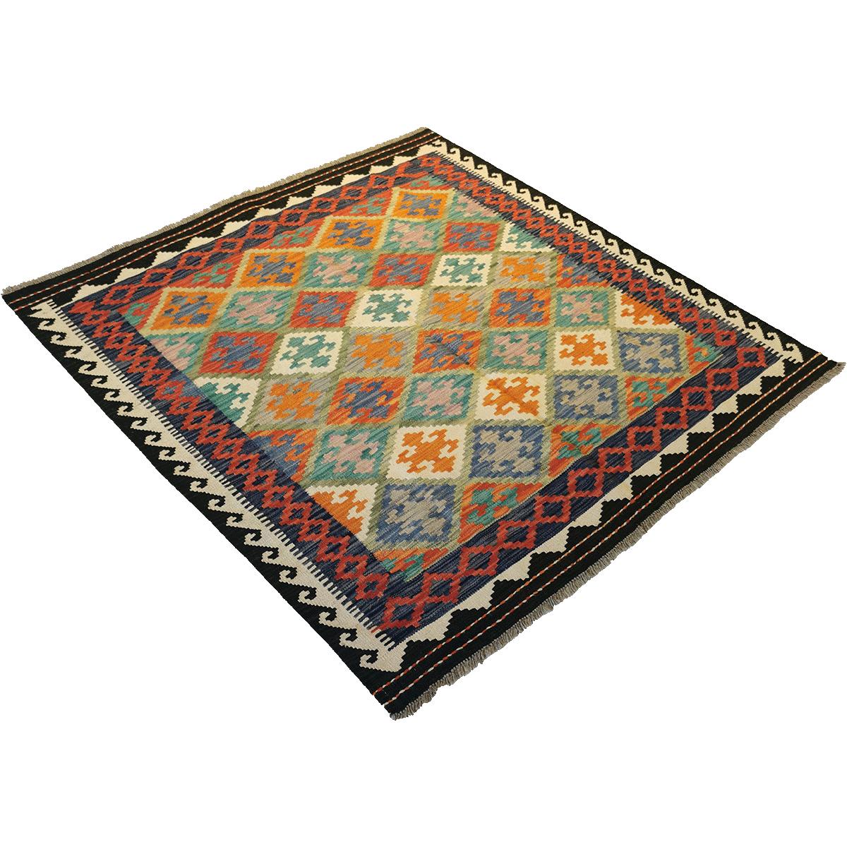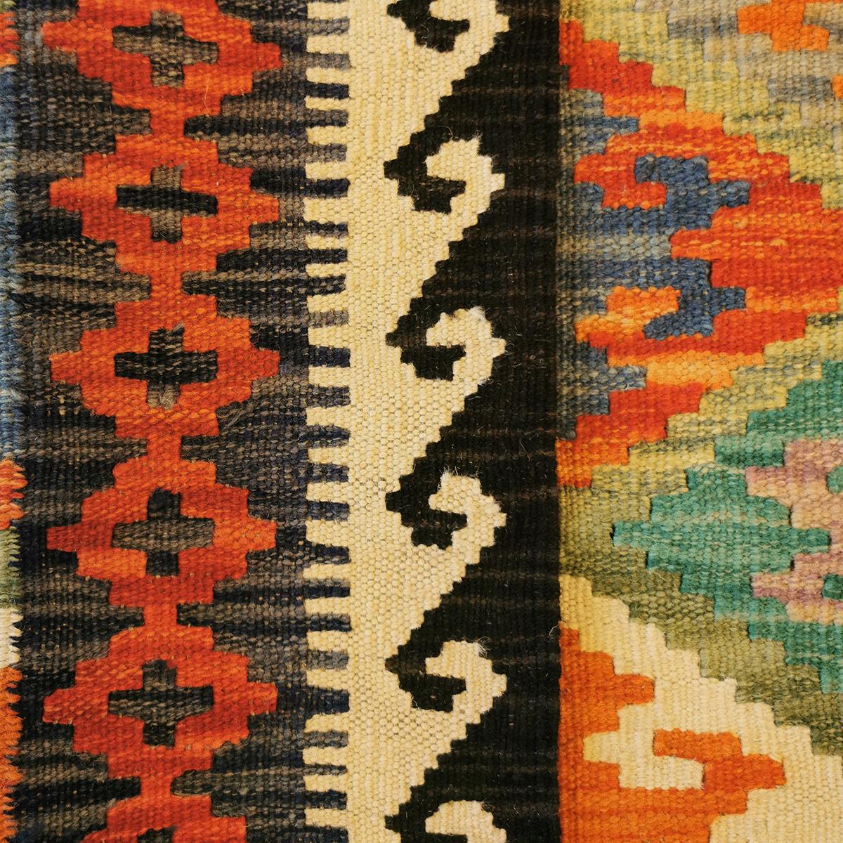 Afghanske kelimer er håndvevde tepper med sterke, geometriske mønstre og rike farger. De lages tradisjonelt i Afghanistan, ofte av ull, og har en karakteristisk flatt vevd struktur uten lugg. Mønstrene kan variere fra enkle design til mer intrikate motiver, og kelimene er kjent for sin rustikke, autentiske stil som passer godt inn i både tradisjonelle og moderne interiør. Disse kelimene er vendbare og kan brukes på begge sider.