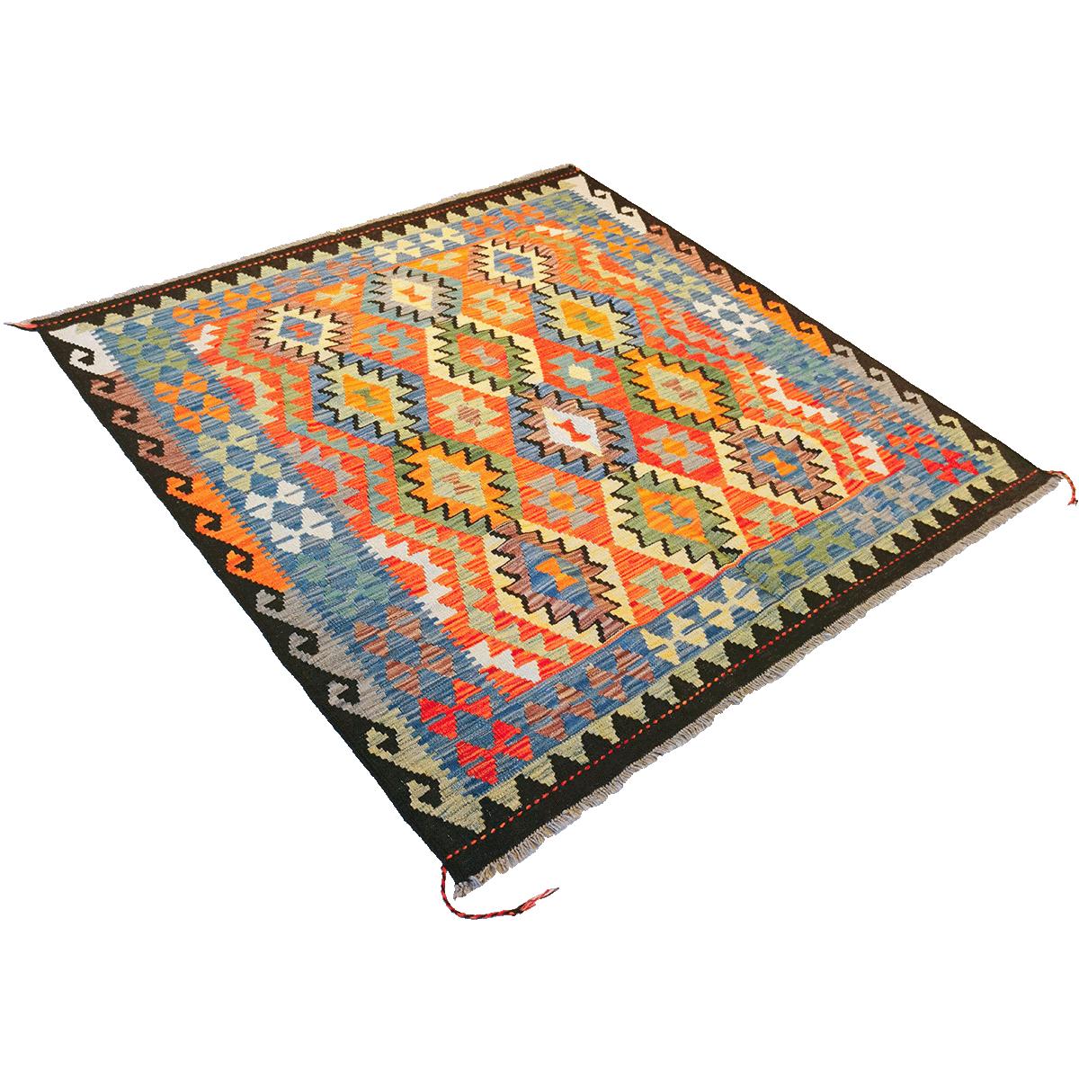 Afghanske kelimer er håndvevde tepper med sterke, geometriske mønstre og rike farger. De lages tradisjonelt i Afghanistan, ofte av ull, og har en karakteristisk flatt vevd struktur uten lugg. Mønstrene kan variere fra enkle design til mer intrikate motiver, og kelimene er kjent for sin rustikke, autentiske stil som passer godt inn i både tradisjonelle og moderne interiør. Disse kelimene er vendbare og kan brukes på begge sider.