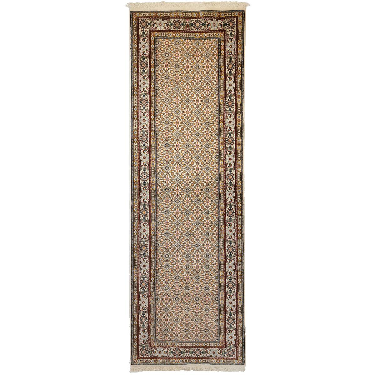 Moud-tepper, fra byen Moud i Nord-Iran, er kjent for sin sterke kvalitet og vakre, geometriske mønstre. De er ofte lyse i fargene, med nyanser av beige, elfenben og lyseblått, men kan også ha varme, jordnære toner som rød og mørk blå. Laget av fin ull på bomullsrenning, har Moud-tepper karakteristiske blomstermotiv og er populære for sitt solide håndverk og estetiske appell.