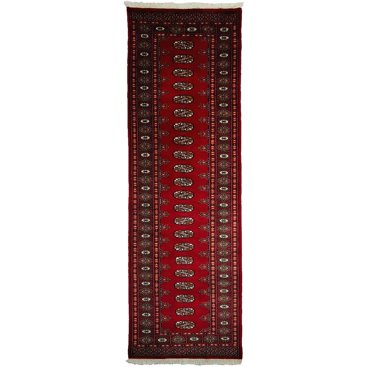 Pakistanske Bokhara-tepper er kjent for sitt unike og verdenskjente elefantfot-mønster, som tilfører et tidløst og sofistikert preg til ethvert rom. Dette vakre mønsteret, kombinert med elegante geometriske detaljer, skaper et harmonisk design som appellerer til både klassiske og moderne interiører. Teppene er laget av ull av høy kvalitet, som gir en naturlig glans og en myk, behagelig tekstur. Den tette knyttingen sørger for en imponerende slitestyrke, noe som gjør Bokhara-teppene til både et visuelt og praktisk valg for varige, elegante rom.