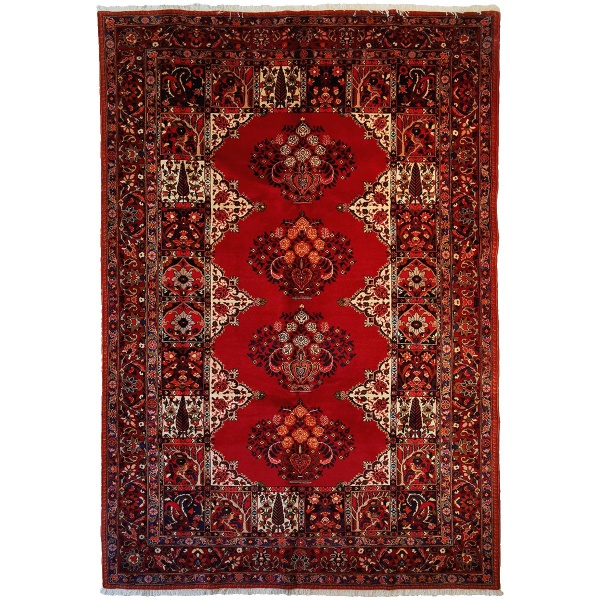 Bakhtiar-tepper håndknyttes av Bakhtiari-folket i Zagros-fjellene vest for Isfahan, et område med en stolt teppetradisjon som går flere hundre år tilbake. Vevekunsten ble utviklet blant nomadiske stammer og landsbyer som brukte ull fra egne sauer, kjent for sin naturlige glans og slitestyrke. Teppene har ofte hageinspirerte mønstre (Khesti) delt inn i ruter fylt med blomster og trær, symboler på fruktbarhet og paradis. Fargene i dype røde, blå og jordtoner gir et varmt og levende uttrykk, og gjør Bakhtiar-tepper til noen av de mest karakteristiske og varige persiske teppene som finnes.