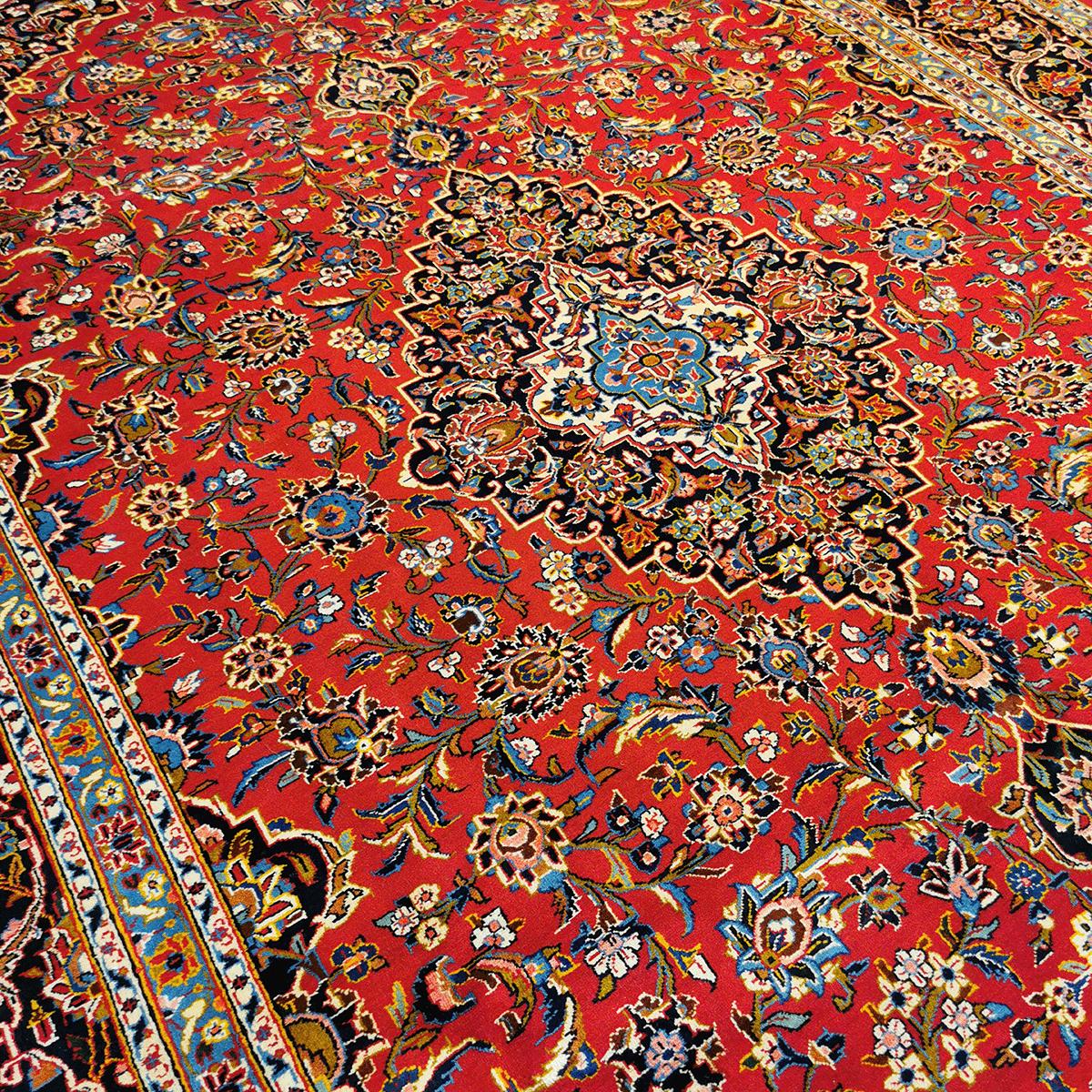 Kashan-tepper, fra byen Kashan i Iran, er kjent for sin eleganse og intrikate design. De er laget av fin ull eller silke på bomullsrenning, med detaljerte blomster- og medaljong-mønstre. Tepper fra Kashan har rike farger som rød, blå og beige, og er ettertraktede for sin høye kvalitet og skjønnhet.