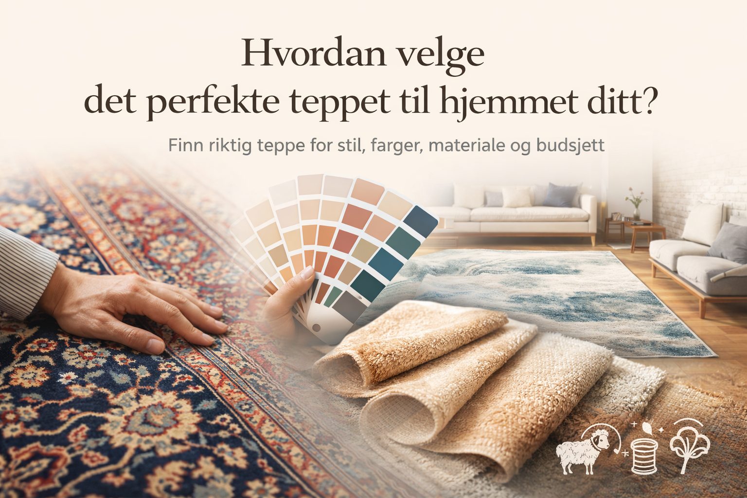 Størrelse og romtype Riktig størrelse på teppet er avgjørende for helhetsinntrykket. Stue: Velg et teppe stort nok til å samle møblene. Sofaen og stolene bør stå helt eller delvis på teppet. Spisestue: Sørg for at stolene står trygt på teppet selv når de trekkes ut. Soverom: Mindre tepper fungerer fint som sengeforleggere, mens et større teppe foran sengegavlen kan skape en elegant helhet. Gang og hall: En løper passer godt i lange ganger. I en hall gir et persisk teppe et sterkt førsteinntrykk – nesten som et kunstverk som ønsker gjestene velkommen. Andre rom: Kelimer er robuste og lette å rengjøre, og egner seg godt på kjøkken, bad eller til bruk utendørs på sommeren. Tips: Mange rom kler mer enn ett teppe. Flere tepper i ulik størrelse og stil kan skape en spennende, men balansert helhet.